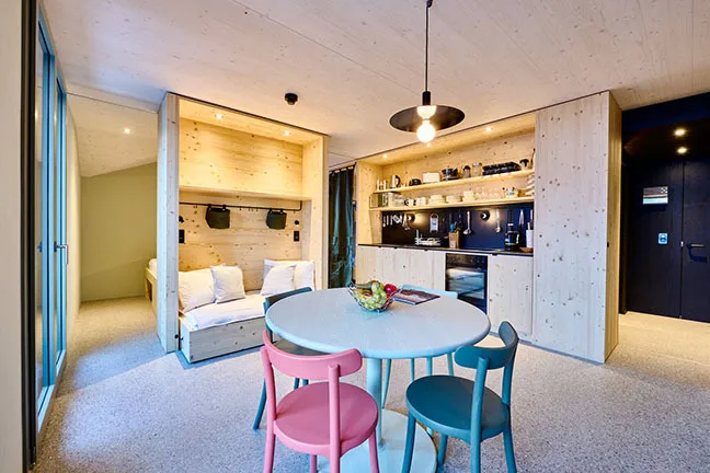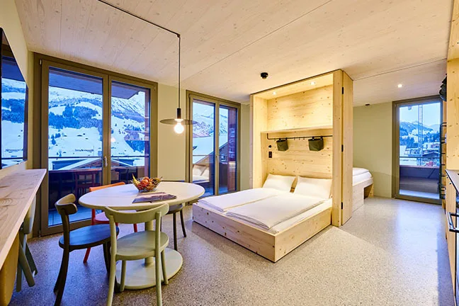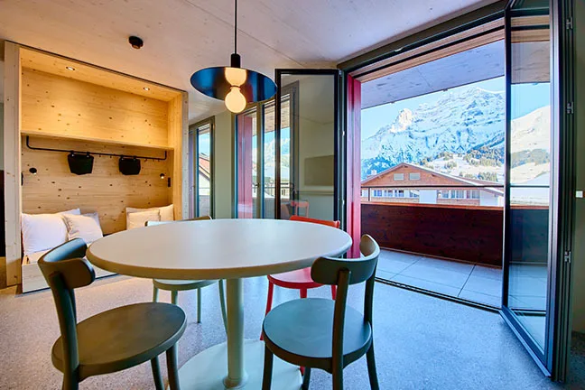 Du geniesst die wohltuende Alpenluft vom eigenen Balkon aus mit Bergblick. Die im alpinen, mit hellem Holz eingerichteten Unterkünfte bieten gemütliche Sitzbereiche, Satelliten-Flachbild-TVs und eine voll ausgestattete Küche – sogar mit Fondue-Caquelon und Racletteofen! Falls du dich doch kulinarisch verwöhnen lassen möchtest: Im hauseigenen Restaurant erwarten dich lokale Köstlichkeiten, inklusive vegetarischer, laktosefreier und veganer Optionen. Lass dich von den wunderschönen Impressionen der Schweizer Alpen verzaubern und verbringe die schönste Zeit des Jahres nach Lust und Laune genau so, wie du es dir vorstellst.