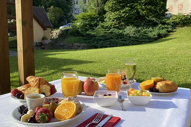 - Je nach Gutscheinwahl: Tägliches Frühstücksbuffet oder Halbpension mit täglichem Frühstücksbuffet und 3-Gang-Dinner Clos des Sources (exkl. Getränke)