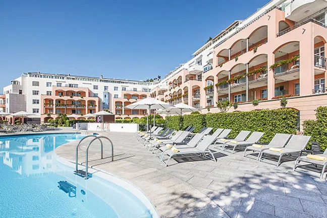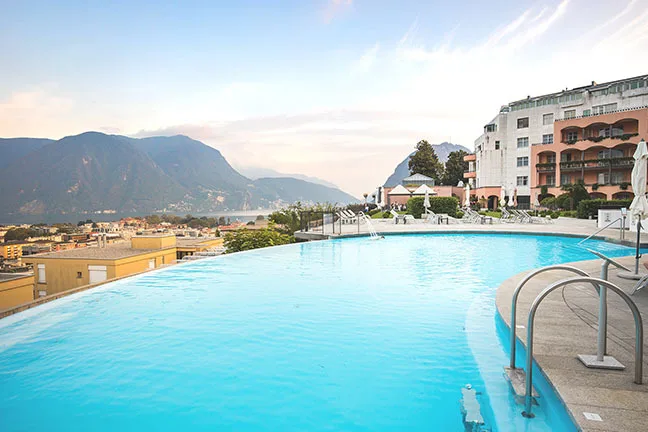 Auf der Sonnenterrasse der Schweiz: Benvenuti a Lugano! Eingebettet in die sanfte Hügellandschaft des Tessins bietet dir dein Hotel einen spektakulären Ausblick auf glitzerndes Wasser und saftiges Grün. Hinter den Mauern des imposanten Bauwerks erwartet dich ein romantischer Park, herzliche Gastfreundschaft und zahlreiche Momente der Ruhe und Erholung. Geniesse einen Aufenthalt der besonderen Art!