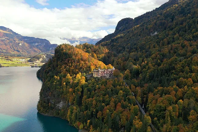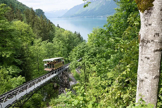 Es geht rauf zum Grandhotel über dem Brienzersee, für das im 19. Jahrhundert die älteste Standseilbahn der Schweiz gebaut wurde! Das Hotel mit eigenem Naturpark ist ein Gesamtkunstwerk, das seinesgleichen sucht. Es wird dich erstaunen, wie anders sich Zeit anfühlen kann. In diesem Haus voller Geschichte ist alles tiefer, wertvoller, intensiver. Dem Grandhotel Giessbach wird zu jeder Jahreszeit ein eigener Zauber eingehaucht. Im Winter verwandelt es sich zum Beispiel in ein wahres Märchenschloss. Freu dich auf den atemberaubenden Blick auf den Brienzersee und den Giessbachwasserfall und erlebe unvergessliche Momente!