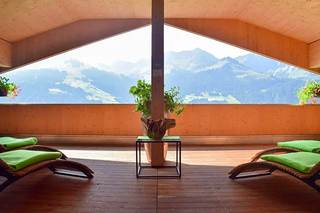 Ein Refugium der Ruhe mitten im UNESCO-Biosphärenpark Grosses Walsertal! Gönne dir Genuss und Erholung in Fontanella und tauche in ein Gefühl von Geborgenheit, Herzlichkeit und Ruhe ein. Duftende Kräuter im ganzen Haus erzählen vom Kommen und Gehen der Natur, vom Heilen und von der Freude an der Natur. Die Verbundenheit mit der Natur und der nachhaltige Umgang mit ihr werden hier gelebt. Auf insgesamt 1600 m² entspannst du im Wellnessbereich mit Blick auf die Bergwelt des grossen Walsertals. Schwimme im Innen- und Aussenpool, schwitze in der Sauna oder lass dich mit einer meditativen Massage verwöhnen.