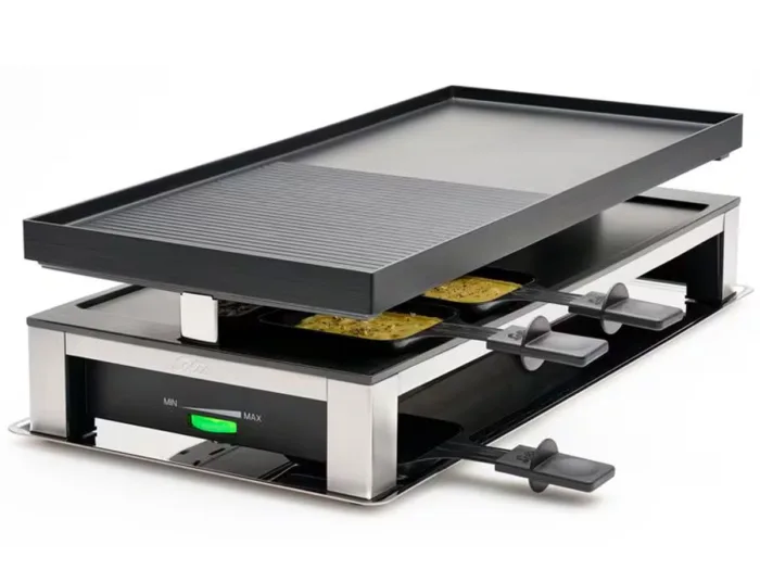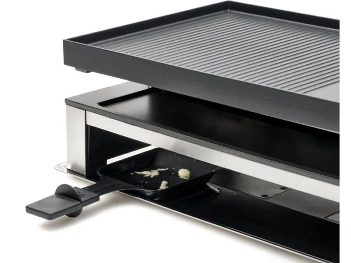 - Racletteofen mit Tischgrill und Vertiefungen für Crêpes