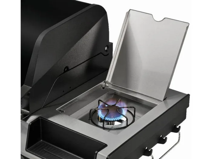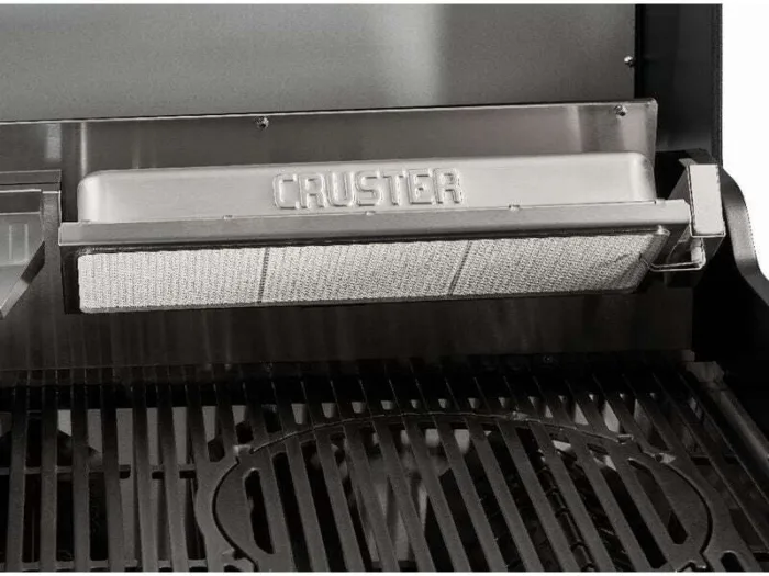 Der integrierte Cruster bringt zusätzliche Oberhitze ins Spiel und eignet sich perfekt zum Überbacken oder Karamellisieren deiner Grillgerichte. Während du weiter grillierst, hält der Warmhalterost aus Edelstahl bereits fertiges Grillgut zuverlässig warm. Die festen Seitenablagen bieten ausserdem eine praktische Ablagefläche für Zutaten, Gewürze und Grillzubehör, damit du alles griffbereit hast und dich voll auf das Grillvergnügen konzentrieren kannst.