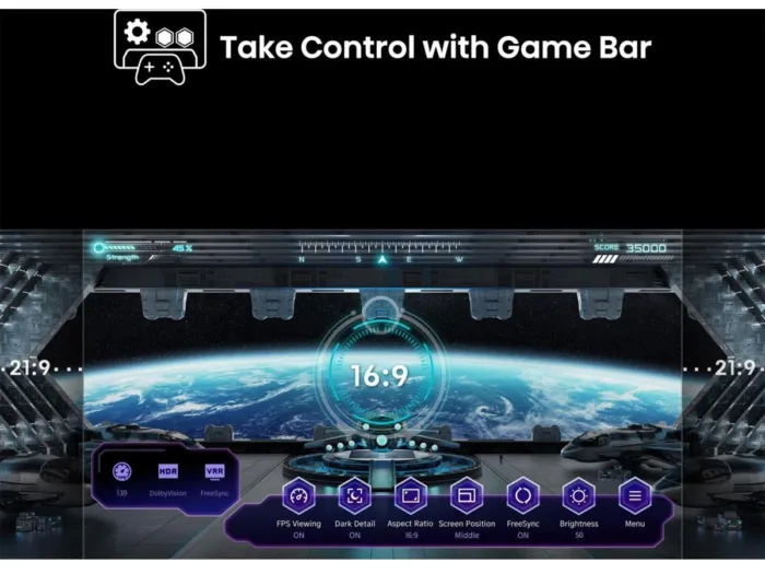 Betritt dein Gaming-Dashboard – Game Bar. Echtzeit-Metriken wie FPS, HDR und VRR sind direkt auf Knopfdruck verfügbar. Passe die Bildschirmposition oder das Seitenverhältnis während des Spiels an. Habe alle Daten und Steuerelemente parat, um dein Spiel zu optimieren. Erlebe die Präzision, Kontrolle und einen Vorsprung gegenüber anderen.