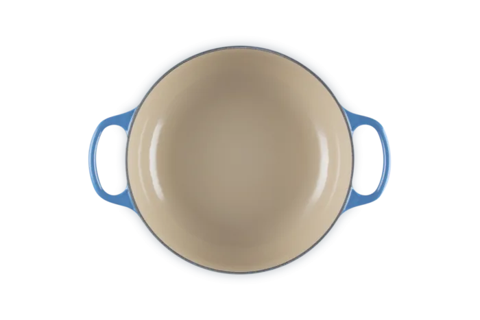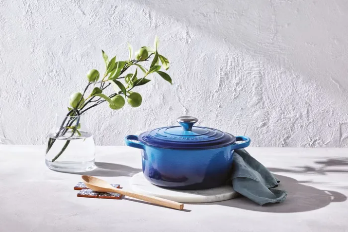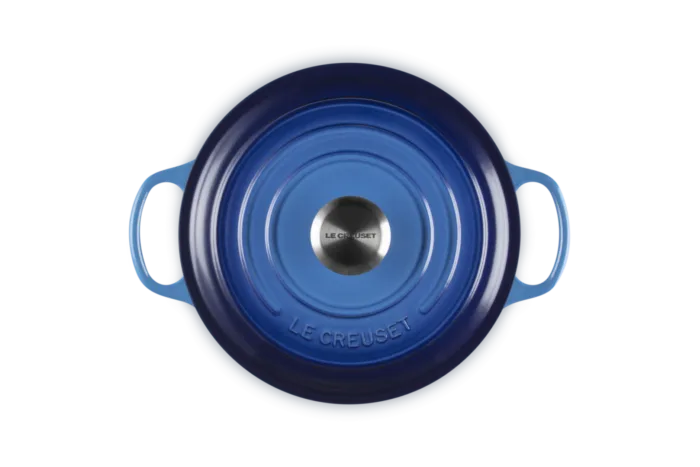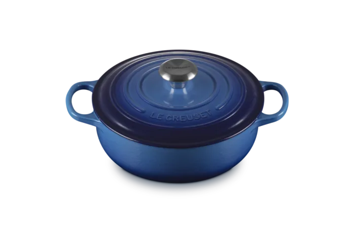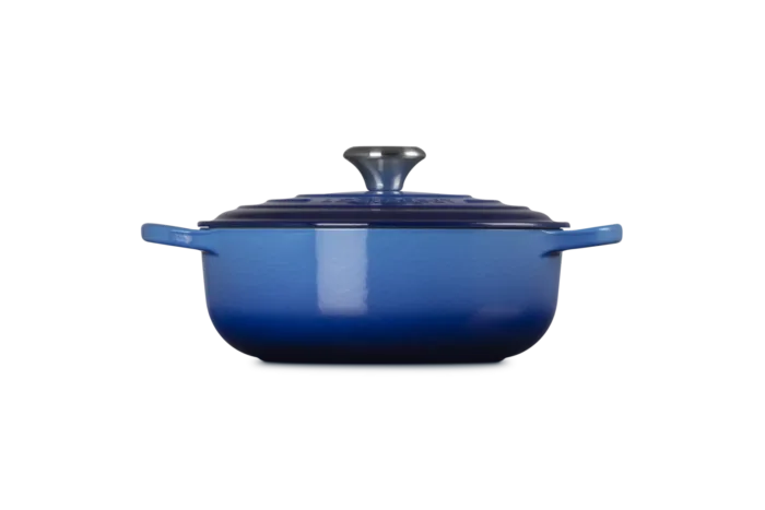Der Signature‑Bräter wird aus hochwertigem emailliertem Gusseisen gefertigt und kombiniert klassische Handwerkskunst mit moderner Verarbeitung. Die grossen Griffe, der solide Deckel und die wunderschöne Farbauswahl – etwa Azur oder Sea Salt – machen ihn zu einem Stück, das nicht nur funktional, sondern auch optisch ein Highlight ist. Du kannst ihn direkt vom Herd auf den Tisch stellen und deine Gerichte stilvoll servieren.