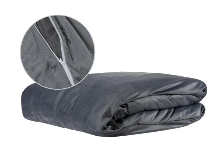 Hinweis: Der Samtbezug ist mit bis zu 40 Grad waschbar und kann bei niedriger Temperatur im Tumbler getrocknet werden. Die Gewichtsdecke selbst darf nicht gewaschen werden.