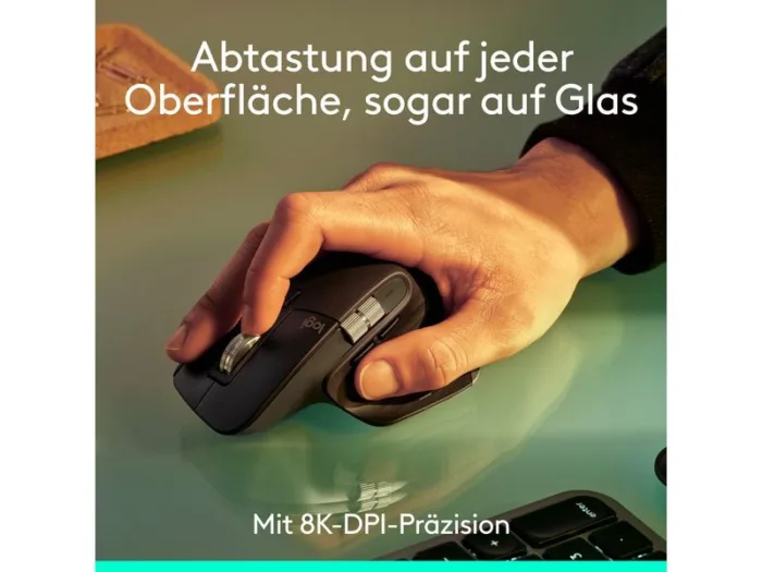 Die MX Master 3S ist mit unserem genauesten Sensor aller Zeiten ausgestattet und bietet Präzision und Reaktionsfähigkeit der nächsten Generation. Der optische Sensor mit 8000 dpi funktioniert praktisch überall – sogar auf Glas. Du kannst die Abtastempfindlichkeit in Logi Options+, welche die Logi- Options+-Software erfordert (erhältlich für Windows und macOS), anpassen und die richtige Stufe für deinen Workflow und deine Monitorauflösung einstellen.