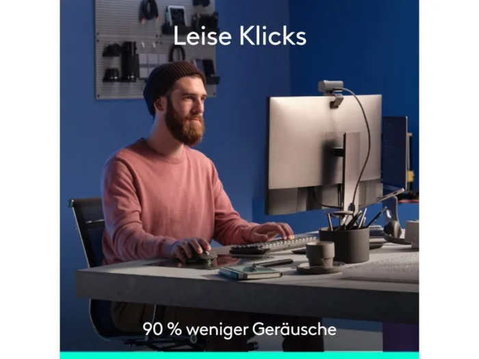 Wir stellen vor: Leise Klicks – kreativ und produktiv zu sein mit demselben Klickgefühl, aber mit weniger Geräusch. Leise Klicks liefern ein angenehmes, weiches taktiles Feedback mit 90 % weniger Klickgeräusch. Hinzu kommt das bemerkenswert leise elektromagnetische MagSpeed-Scrollrad für Leistung ohne Ablenkung.