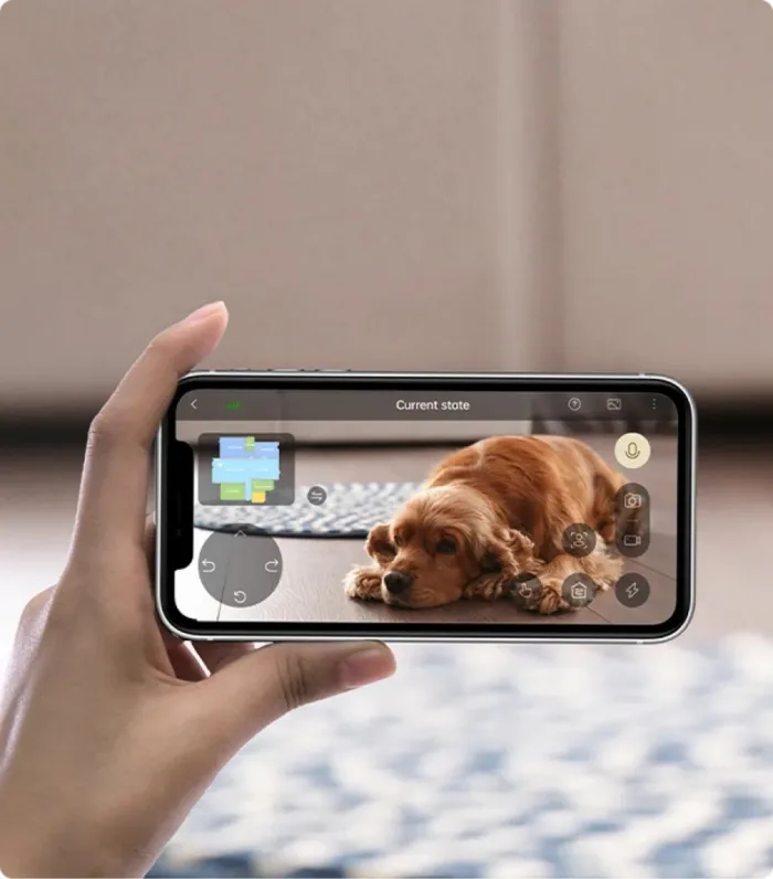 Über die Dreamehome-App steuerst du den Roboter von überall aus, legst Reinigungsmodi fest und passt die Feuchtigkeit der Mopps in 32 Stufen an. Zusätzlich kannst du per Kamera sogar in Echtzeit mit Haustieren interagieren oder nachsehen, ob zu Hause alles in Ordnung ist. Auf Wunsch steuerst du den Roboter auch per Sprachbefehl über Alexa, Siri oder Google Home.