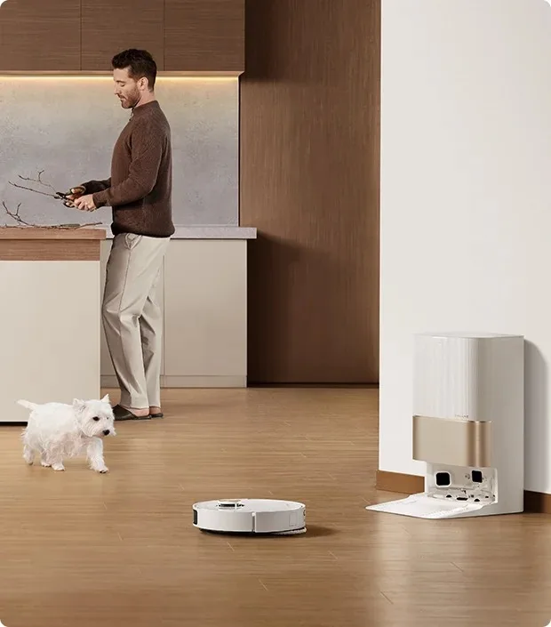 Dank KI-gestützter Hinderniserkennung mit RGB-Kamera und strukturiertem 3D-Licht erkennt der Roboter über 120 Objekte – von Kabeln bis zu Schuhen – und weicht ihnen zuverlässig aus. Er navigiert auch im Dunkeln präzise und plant seine Route je nach Raum, Bodenbelag und Möbelposition. Über die App passt du jede Zone individuell an, legst Sperrbereiche fest oder steuerst einzelne Räume gezielt an.