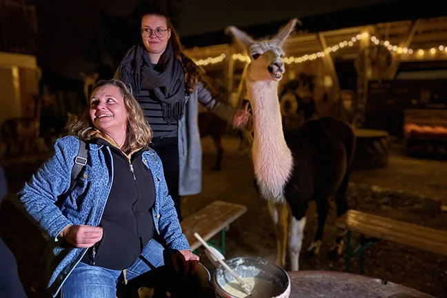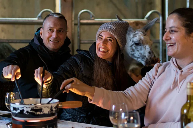 Was dich beim Winter-Fondue mit Alpakas erwartet