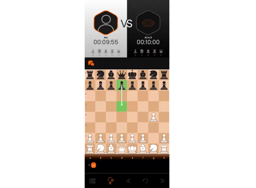 Wenn du in der Begleit-App eine neue Schachpartie startest, kannst du zwischen mehreren verschiedenen Modi auswählen: Du kannst einerseits gegen die KI in 32 verschiedenen Schwierigkeitsstufen spielen (von Elo 400 bis 3000) und dir dabei nützliche Tipps geben lasse. So zeigt dir das Schachbrett beispielsweise die besten Züge an und warnt dich, wenn du einen Fehler begehst. Andererseits kannst du aber auch dein gelerntes Wissen umsetzen und die Tipps für deine nächste Partie ausschalten.