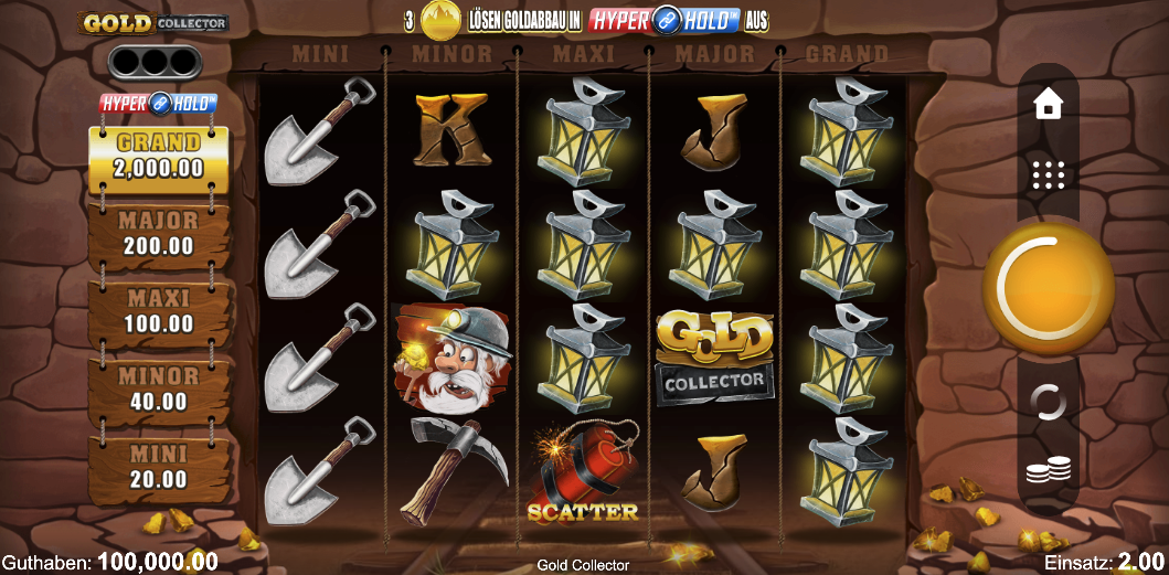 Vielleicht hast du aber eher Lust, in einer Mine auf Goldsuche zu gehen. Das ist beim Slot Gold CollectorLink opens in a new tab möglich. Dort machst du dich mit einer Spitzhacke und einem Spaten – und ein wenig TNT – in den dunklen Berg auf. Das Spiel verfügt über fünf Walzen, 50 Gewinnlinien und 96,4 % Ausschüttungsquote. Der Mindesteinsatz ist 10 Rappen, er Maximaleinsatz 100 Franken.