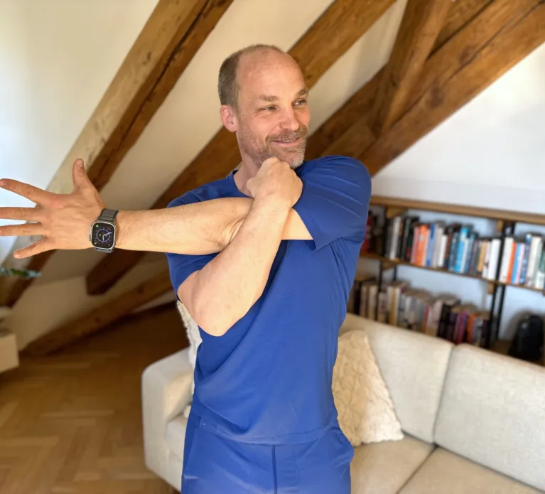 Ich selbst trainiere regelmässig, um in Topform zu bleiben und ein Vorbild zu sein. Mein Trainingsprogramm umfasst Krafttraining, Ausdauersportarten wie Laufen und Radfahren sowie Mobilitätsübungen wie Yoga. Darüber hinaus absolviere ich sportartspezifische Übungen, je nachdem, mit welchen Athleten ich arbeite, und konzentriere mich auf funktionelle Fitness, die sowohl Sportlern als auch Berufstätigen zugutekommt, die einen aktiven Lebensstil pflegen möchten. Da ist guter Schlaf unabdingbar.