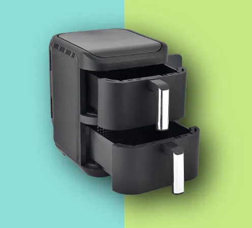 Mit dieser Heissluftfritteuse von Ohmex holst du dir ein besonders vielseitiges Modell nach Hause und sparst momentan und nur für kurze Zeit sogar noch 50 Prozent auf den Originalpreis! Die Fritteuse verfügt über ein grosszügiges Fassungsvermögen von insgesamt 11 Litern, aufgeteilt in zwei vertikal gestapelte Körbe mit jeweils 5,5 Litern. Dadurch kannst du zwei verschiedene Speisen gleichzeitig zubereiten, ohne dass sich die Aromen miteinander vermischen. So kannst du in der unteren Schublade beispielsweise Fleisch oder Fisch garen, während oben Gemüse oder eine andere Beilage knusprig wird. Das spart dir Zeit und macht die Fritteuse ideal für Familien oder wenn du Gäste bewirtest. Trotz des grossen Volumens bleibt das Gerät kompakt und passt gut auf deine Küchenarbeitsfläche.
