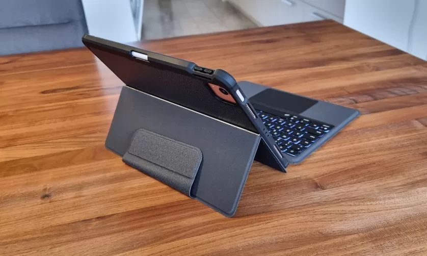 Die Hülle verfügt ausserdem über einen praktischen Standfuss, der das Aufstellen des Tablets erleichtert. Und wenn du das iPad doch einmal als schlichtes Tablet verwenden möchtest, kannst du die Hülle, die magnetisch an der Tastatur befestigt ist, ganz einfach ablösen und das Tablet frei transportieren. So stehen dir alle Verwendungsmodi offen, und du kannst dein iPad genau so zum Einsatz bringen, wie du das möchtest.