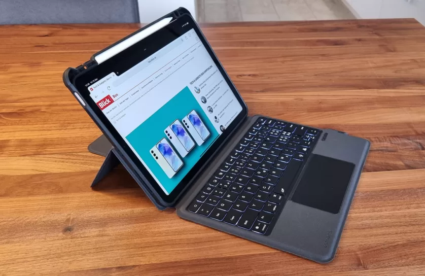 Dass ich das iPad als Notebook-Ersatz verwenden kann, ist aber nur dank einer Hülle möglich, die gleichzeitig auch als Tastatur und Trackpad fungiert. Wenn ich das iPad in dieser Hülle benutze, spüre ich wirklich keinen Unterschied zwischen Notebook und Tablet mehr. Denn wer schon einmal versucht hat, einen längeren Text ausschliesslich auf dem Touchscreen eines iPads zu schreiben, weiss, wie mühsam dieses Unterfangen ohne physische Tastatur ist.
